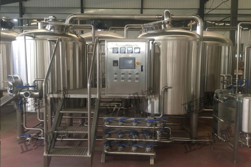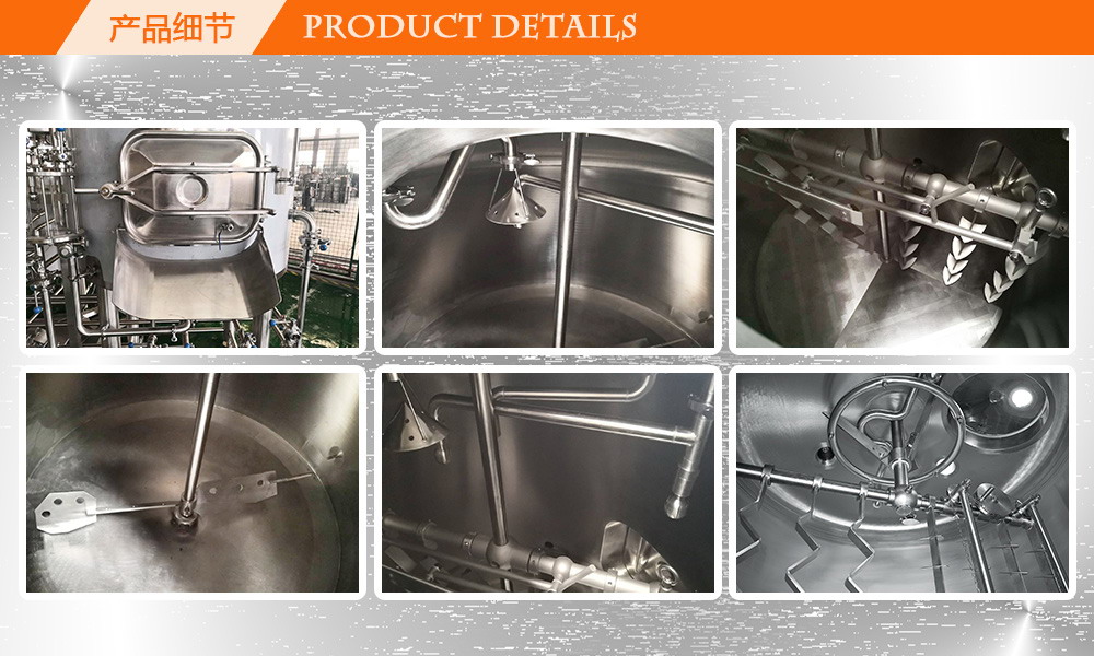糖化系统是有糖化煮沸锅、过滤槽、漩涡沉淀槽及工艺管道组成;糖化煮沸锅为“蒸汽加热式;电加热式;燃气加热式”组成。罐体为双层保温方式“岩棉或聚氨酯”材料。加热面积足够达到麦汁煮沸蒸发量,能够有效阻止热能耗的外泄。罐体内部采用国际标准不锈钢精加工而成;外部采用不锈钢或紫铜镜面板组成,古朴典雅的外观造型;即酿出美妙佳酿还有艺术品的象征。糖化煮沸锅顶部加装搅拌系统能使醪液均匀糖化;过滤槽顶部加装耕刀系统保证醪液匀速过滤避免氧化。漩涡沉淀系统;采用切线及离心力的作用能够彻底的分离出多余的蛋白质及杂质,达到成熟麦汁的纯净度。